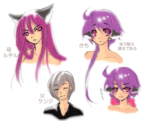父が人間なせいか、ハーフのさもは突然変異的に人の耳の位置に猫耳っぽいものが生えてます。